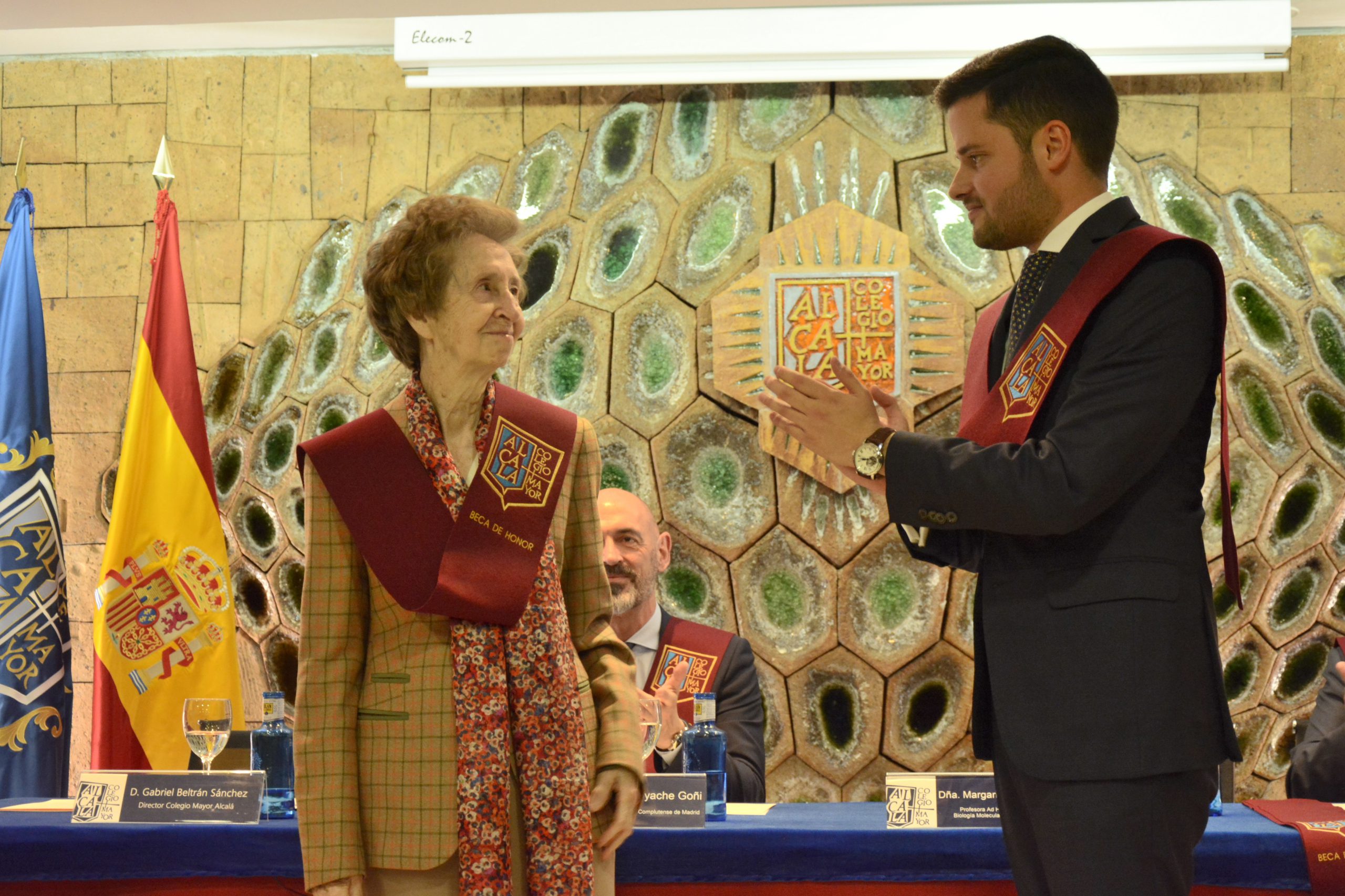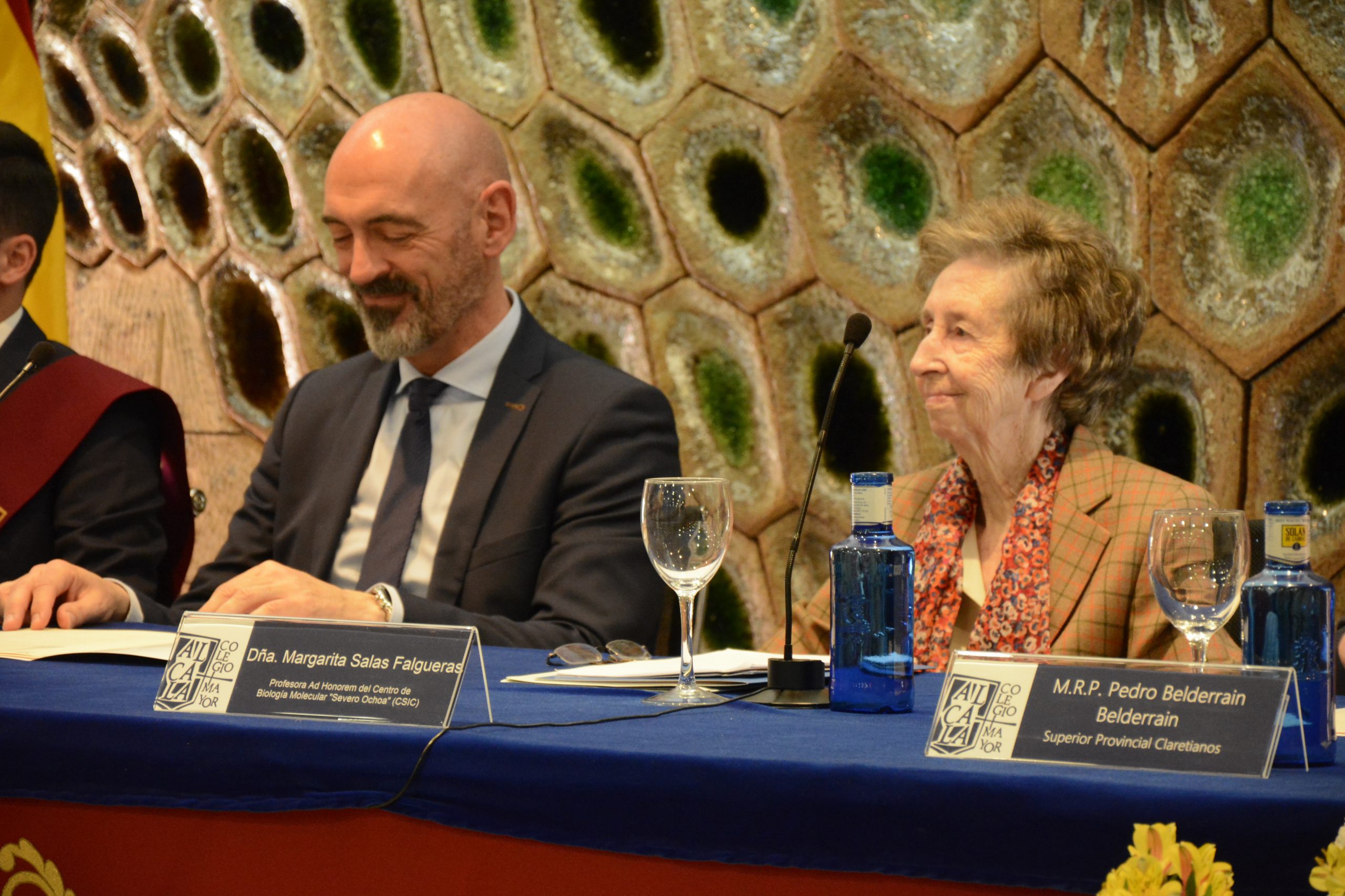 La mañana del 12 de mayo de 2019 ya forma parte de las páginas más importantes de la historia del Colegio Mayor Alcalá. El Acto de Clausura vivido esa soleada mañana de domingo será recordado por muchos y muy importantes motivos, que a continuación se comprobarán. El Acto estuvo presidido por el Excmo. Sr. D. Joaquín Goyache Goñi, Rector electo de la Universidad Complutense de Madrid,  a quien acompañaron en la mesa, la Dra. Dña. Margarita Salas, bioquímica, científica e investigadora, así como el Superior Provincial de los Misioneros Claretianos de la Provincia de Santiago, P. Pedro Belderrain, y el Director del Colegio Mayor Alcalá y Presidente de la Asociación de Colegios Mayores de Madrid, D. Gabriel Beltrán Sánchez.  Fue precisamente nuestro Director quien tomó la palabra en primer lugar para agradecer la numerosa presencia, tanto de Colegiales, como de Equipos Directivos de ni más ni menos que 25 instituciones académicas que nos dimos cita en el Acto de Clausura del CM Alcalá. A su vez, nuestro director recalcó la importancia de instituciones como los Colegios Mayores en la responsabilidad compartida con la Universidad de formar de manera integral a nuestros jóvenes. Por supuesto, nuestro Director no quiso desaprovechar la ocasión para agradecer a los Misioneros Claretianos, trabajadores y colegiales, su unión y compromiso para mejorar, curso tras curso, los objetivos propuestos para nuestro Mayor. A continuación, tuvo lugar uno de los momentos más esperados para todos los presentes, la lección magistral a cargo de la Dra. Margarita Salas, bioquímica e investigadora, o como mencionaban en una entrevista nacional esta misma semana, “la científica más importante de la historia de España”. Margarita nos trasladó a su propia historia de vida, personal, universitaria y profesional, quedando patente la importancia de la contribución de la figura de la Dra. Salas a la investigación en el campo de la Biología Molecular. Todo el público asistente al Acto quiso agradecer a la Dra. Salas su ejemplo y dedicación con una atronadora ovación que se extendió en el tiempo. Acto de Clausura de Curso 2018/2019 CM Alcalá Tras la lección, llegó el momento de la imposición de Becas y distinciones colegiales, motivo central que nos congregó en el Acto de Clausura. Los colegiales de cuarto curso, D. Rodrigo Basante, D. Ignacio Blázquez y D. Javier Gatón recibieron a manos del Director, la Beca Colegial del Mayor Alcalá. Los dos primeros, junto a D. Jesús García, recibían, además, la insignia Colegial por finalización de carrera. A su vez, en esta ocasión, como reconocimiento a su labor en los Actos de Celebración del Cincuentenario del Mayor, se concedió la Beca del Mayor a los Decanos de dichos Actos, D. Jorge Martín y D. Alfonso Montalvo. En nombre de los Colegiales, tomó la palabra Ignacio Blázquez, que, en un gran discurso, en primer lugar, recalcó la importancia para los Colegiales de contar en este acto con el Rector Electo de la Universidad Complutense, a la que nos sentimos orgullosamentenadscritos. Así mismo, Ignacio rememoró su paso por el Mayor e invitó a todos los Colegiales a aprovechar las oportunidades que brinda el Alcalá para, tal y como expuso que sucedió en su caso, crecer y ser mejor persona. Sin duda, uno de los momentos más emotivos del acto vino de la mano del discurso de Dña. Ana María Ramírez, madre del colegial Javier Gatón, quien con su discurso logró emocionarnos a todos y empatizar con su vivencia de la etapa de su hijo desde su papel de madre. Acto de Clausura de Curso 2018/2019 CM Alcalá Seguidamente llegó el momento de la imposición de las Becas de honor del Colegio Mayor Alcalá. En esta edición, el Equipo Directivo decidió otorgar las becas de honor, por un lado, a D. Joaquín Goyache, Rector electo de la Universidad Complutense, y a Dña Margarita Salas, profesora “ad honorem” del Instituto de Biología Molecular “Severo Ochoa” del CSIC – UAM. Por su parte, se otorgó la Beca de Honor a D. José Manuel Burgueño, director del CMU Loyola, por su decidida apuesta por la creación de la Asociación de Colegios Mayores de Madrid, así como al P. Fernando Torres, CMF, representante de la entidad titular en los Colegios Mayores Claretianos y gran responsable de la transformación de los proyectos educativos de ambos Colegios.  Durante su turno de palabra, el Superior Provincial de los Misioneros Claretianos de la Provincia de Santiago, P. Pedro Belderrain, no quiso desaprovechar la ocasión para rendir un homenaje a D. Alfredo Pérez Rubalcaba, profesor de Química, precisamente, en la Universidad Complutense de Madrid. Así mismo, el P. Pedro ensalzó la figura de su “paisana”, la Dra. Dña. Margarita Salas, poniendo en relieve sus contrastados valores de entrega, humildad y constancia, así como su lucha por la igualdad de la mujer en el campo de la investigación científica, donde continúa ejerciendo su labor. Por último, el Rector electo de la Universidad Complutense de Madrid, previamente a dar por clausurado oficialmente el Curso Académico, agradeció haber sido invitado al que mencionó como “su primer acto como rector electo”, en un gesto de compromiso y colaboración con los Colegios Mayores.  Acto de Clausura de Curso 2018/2019 CM Alcalá Desde estas líneas queremos agradecer la presencia en este acto del Excmo. Sr. D. Joaquín Goyache, y de la Dra. Margarita Salas, que dotaron del más elevado nivel de solemnidad a este acto. A su vez, agradecemos a las familias de los colegiales, antiguos Colegiales, equipos directivos de otros Colegios Mayores, y, por supuesto, colegiales del Mayor por acompañarnos en este día tan especial para nosotros. Acto de Clausura de Curso 2018/2019 CM Alcalá