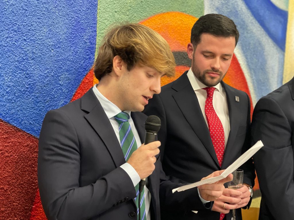 Durante la cena, el Coordinador de Convivencia, D. Iñigo Retolaza Angulo, ofreció un brindis lleno de significado, destacando el excelente ambiente que vivimos día a día en el Colegio Mayor. Sus palabras fueron un recordatorio de lo importante que es construir juntos una comunidad basada en el respeto, la amistad y el compromiso mutuo.