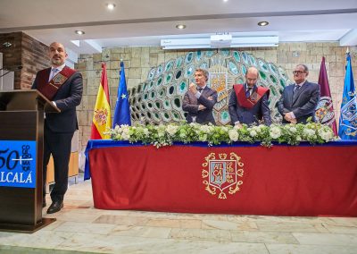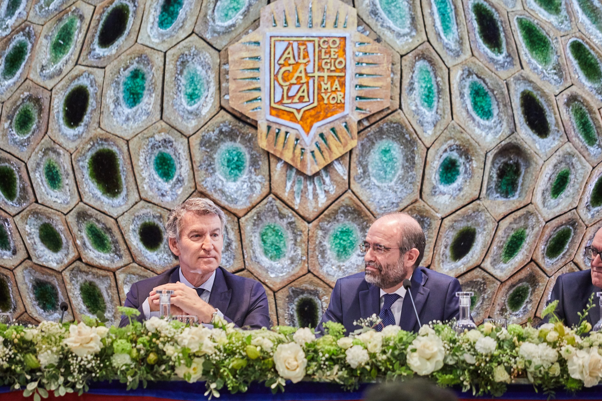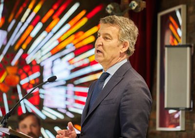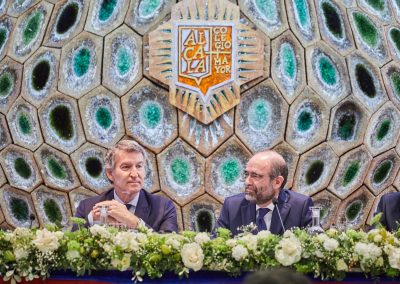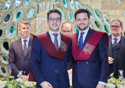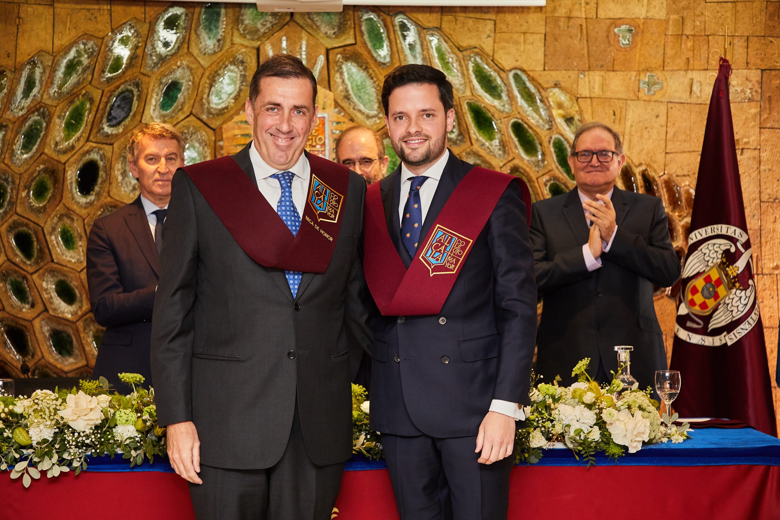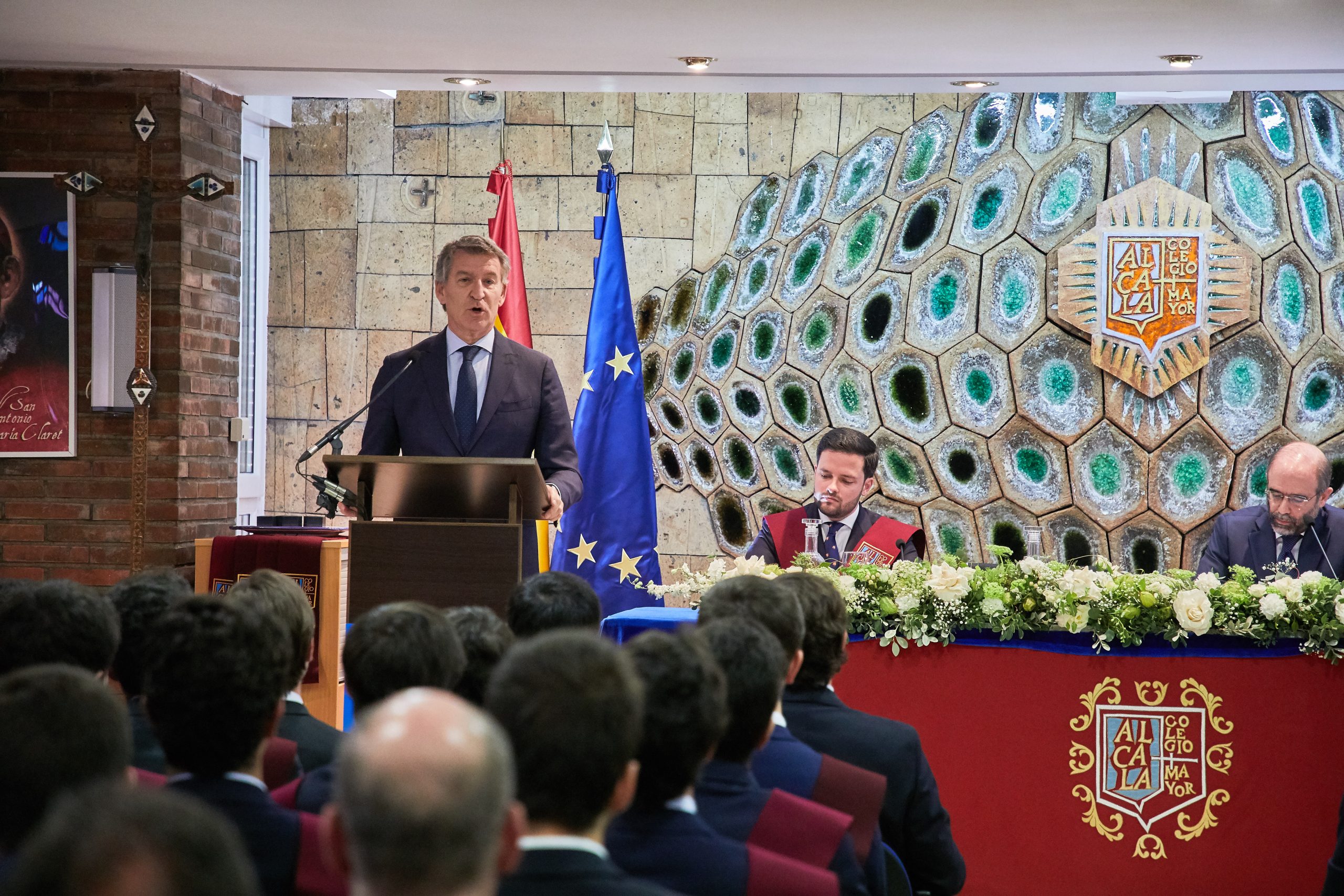 El acto académico contó este año con la intervención del Excmo. Sr. D. Alberto Núñez Feijóo, presidente nacional del Partido Popular y diputado en el Congreso de los Diputados, quien pronunció la lección magistral dirigida a los universitarios. En su intervención, subrayó el papel de la universidad como espacio de libertad, formación integral y compromiso con el bien común. Destacó la importancia de la vocación de servicio como fundamento de la vida pública y personal, e invitó a reperar la «buena política» que fue protagonista de la transición española.