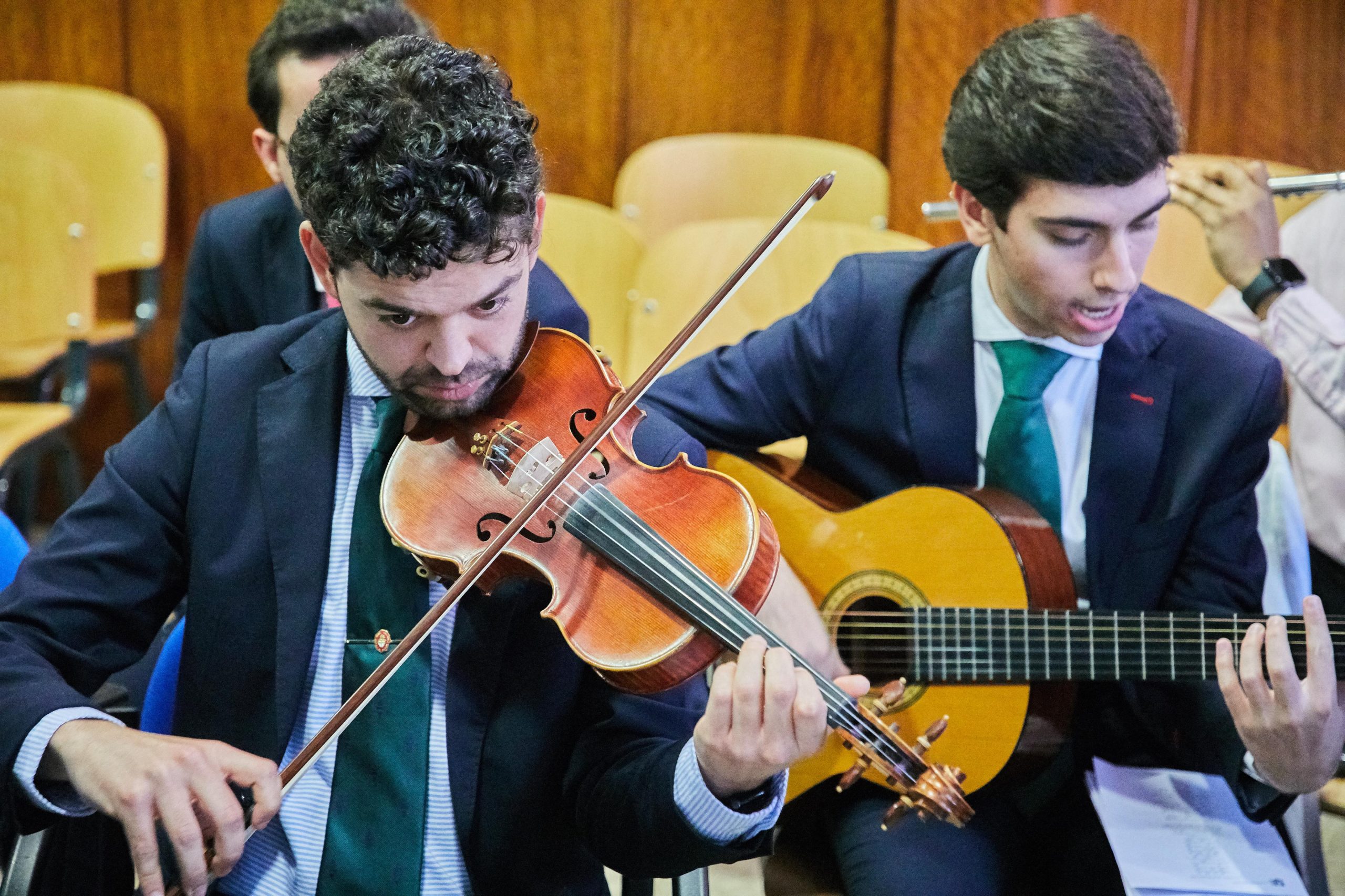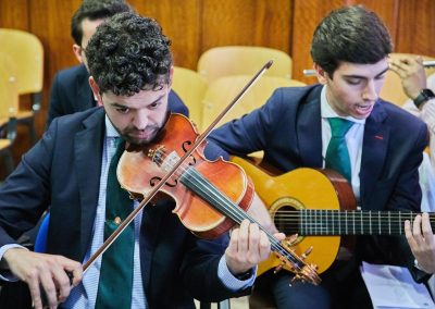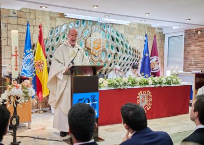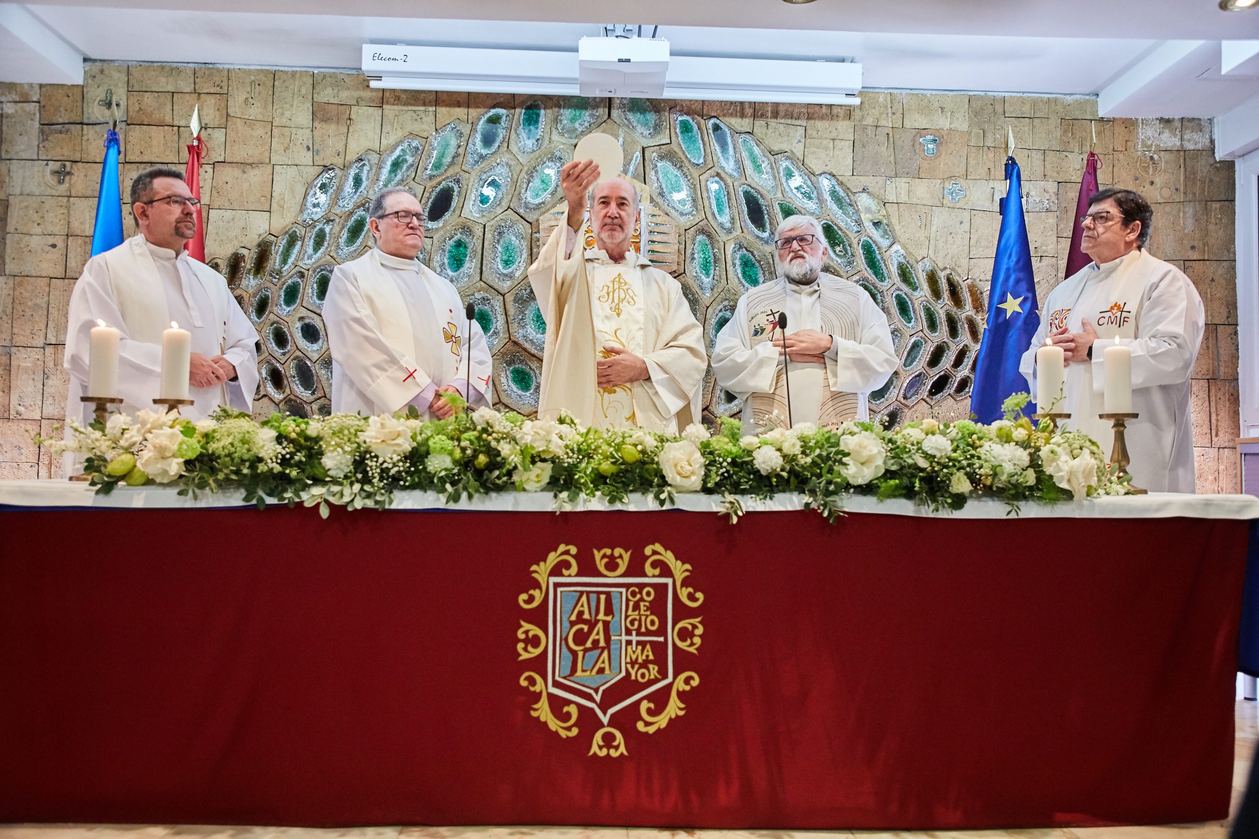 El programa comenzó con la Eucaristía de Acción de Gracias, presidida por el P. Miguel Ángel Velasco, CMF, Superior de la comunidad claretiana de Colegios Mayores. La celebración tuvo lugar en la sala de conferencias, con una participación especial de los colegiales de cuarto curso que van a recibir la beca. El Coro Arde, iniciativa de Claret Way Madrid integrada por jóvenes de varias instituciones claretianas —entre ellos varios colegiales de nuestro Mayor— aportó la belleza con su música a la celebración.