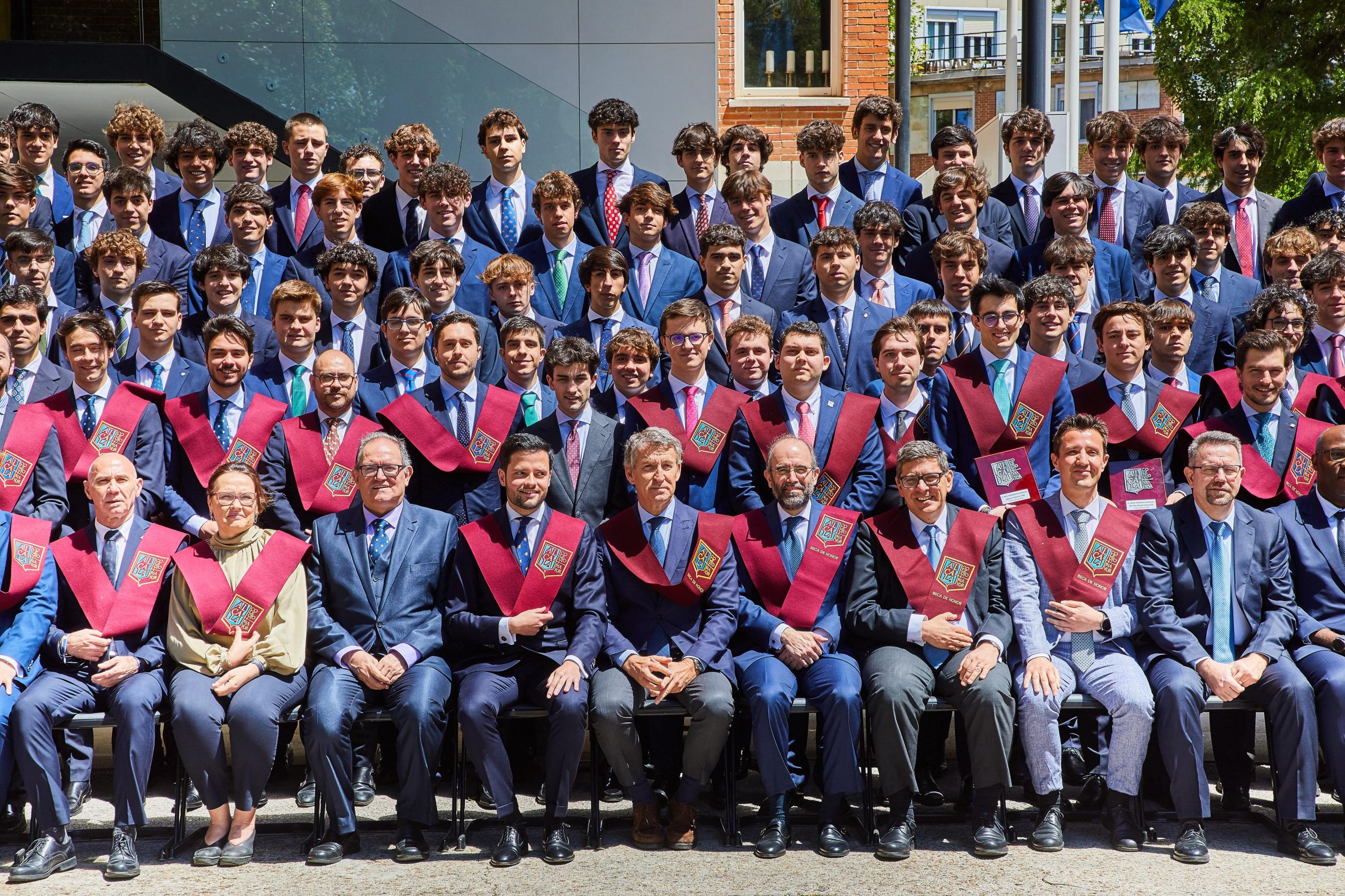 Asimismo, se entregaron las Placas Final de Carrera a los colegiales que concluyen sus estudios universitarios. Jorge Fernández, finaliza sus estudios en el grado de ADE + Máster en Bolsa y Mercados Financieros por el IEB. Mientras que Eduardo Fernández y Abel Hernández, finalizan el grado de Ingeniería en Tecnologías Industriales por la Universidad Politécnica de Madrid. Sus trayectorias reflejan el equilibrio entre excelencia académica y compromiso colegial que define nuestro proyecto educativo.