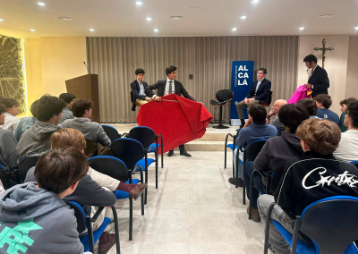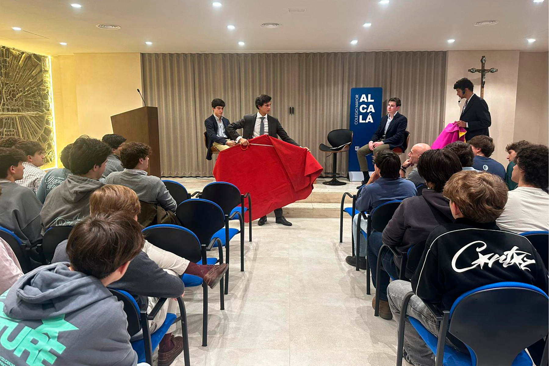 Durante el encuentro, reflexionamos sobre aspectos esenciales de la tauromaquia: el camino del novillero, el momento en que un torero toma la alternativa, la técnica que sostiene cada gesto y la evolución histórica que ha dado forma a esta práctica. Gracias a la presencia de Samuel Castrejón y Luis Rivero, quienes compartieron su experiencia. El coloquio ofreció una mirada completa que fue desde lo artístico hasta lo ético, generando entre los colegiales preguntas, matices y un auténtico interés por entender esta tradición en toda su complejidad.