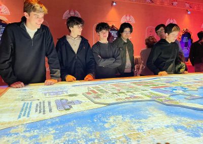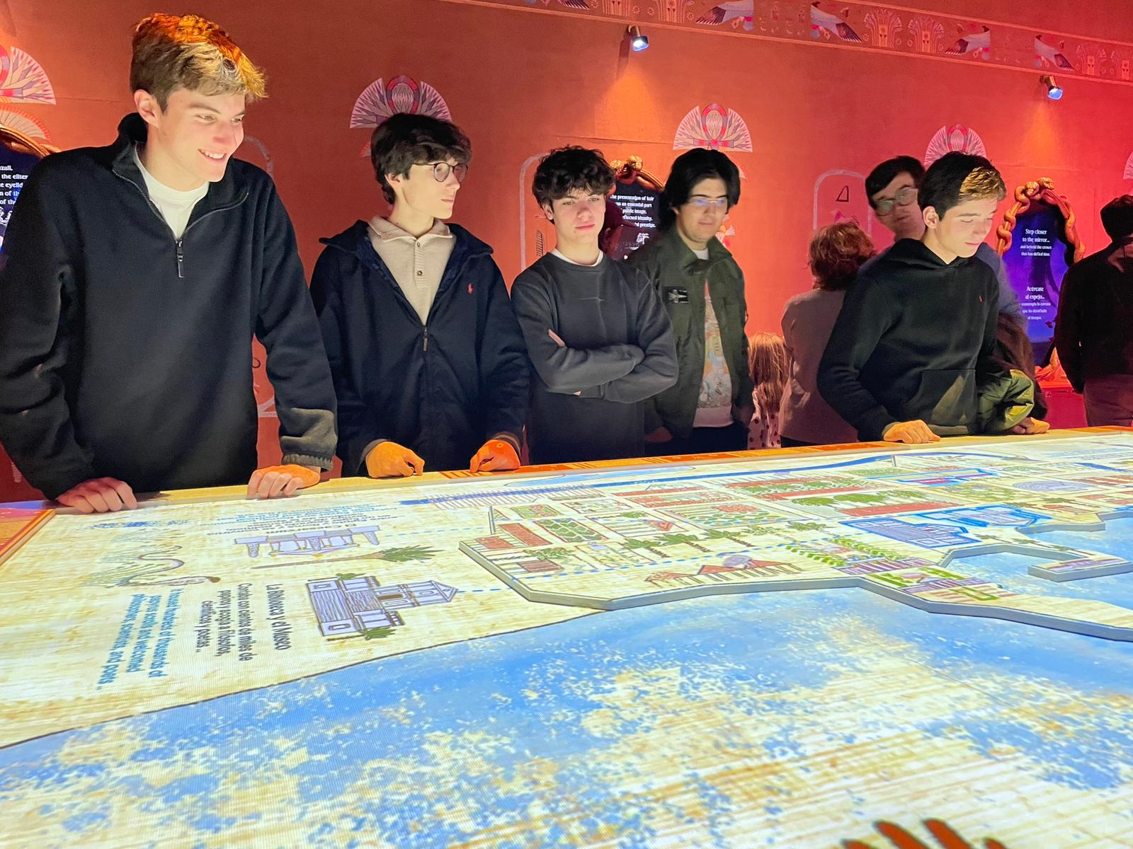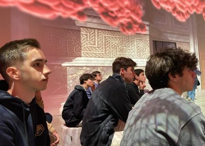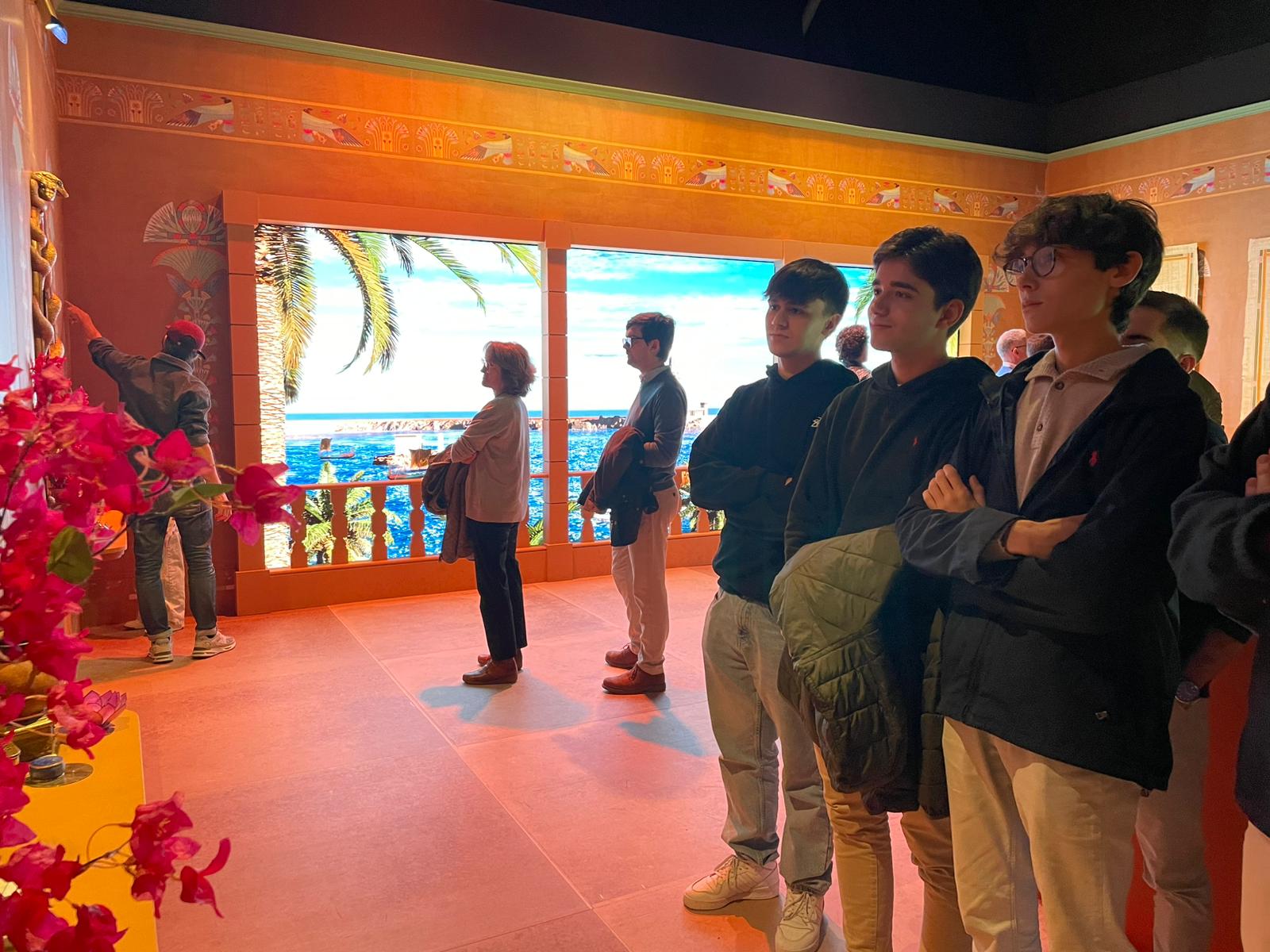 La actividad, desarrollada en el espacio MAD Madrid Artes Digitales, nos permitió viajar al Egipto de los faraones y conocer de cerca la figura de Cleopatra VII, una de las mujeres más influyentes de la historia. A través de una experiencia envolvente, con proyecciones 360º, hologramas y realidad virtual, los colegiales se adentraron en los momentos más decisivos de su vida y su reinado.