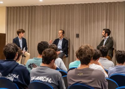 El encuentro, celebrado el jueves 23 de octubre, tuvo un carácter cercano y participativo desde el inicio. Los colegiales plantearon preguntas directas sobre la carrera de Derecho, el acceso al mercado laboral y la evolución de la profesión. Los ponentes respondieron con claridad y profundidad, apoyándose en su amplia experiencia en el ámbito jurídico. Gracias a este diálogo fluido, los colegiales pudieron conocer de primera mano el valor de una preparación sólida y permanente.