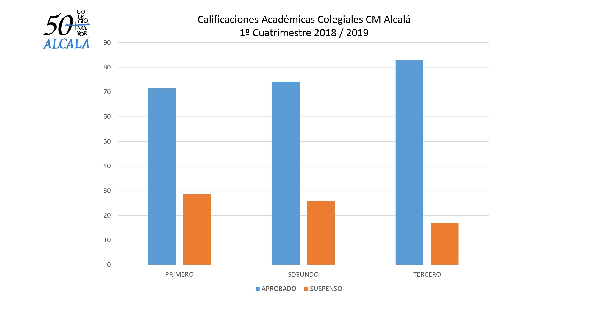 Un año más, el CMU Alcalá hace público el porcentaje de asignaturas superadas por sus colegiales, en este caso, durante el primer cuatrimestre del presente curso 2018 / 2019.
